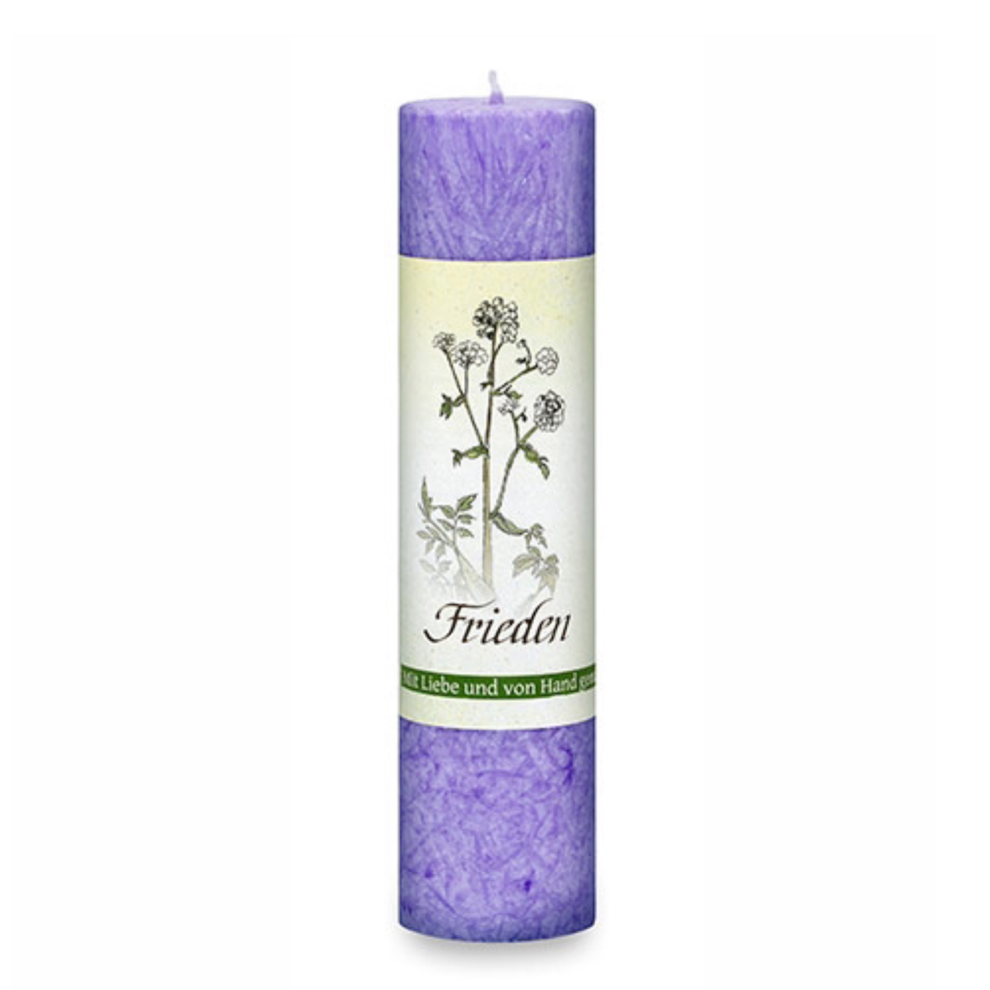 In Jedem steckt die Sehnsucht nach Heilung des Kummers auf der Welt, wieder nach einem Leben im heiligen Frieden, im Einklang mit dem natürlichen Fluss des Lebens. Wir Menschen sind untrennbar mit dem grossen Ganzen verbunden. Es ist wie ein Netz in dem jedes einzigartige Individuum – Mensch, Tier, Pflanze, mit den anderen Geschöpfen und Elementen verwoben ist. Ohne Vision gibt es keine Manifestation und nur wenn wir eine positive Zukunft sehen können, werden wir auch dort ankommen. Gemeinsam besitzen wir Macht, Dinge zu verändern – mit unseren Gedanken vereint zu einem Gedanken und einem Geist. Richten wir mit einem hoffnungsvollen und friedlichen Geist in einer positiven Vision unsere Gedanken auf ein Bild der Erde wie sie aussieht, wenn sie wieder gesund ist, wie die Menschen sind, wenn sie wieder im Einklang mit dem natürlichen Lebensgeist sind und richten wir den Blick nach innen, zu uns selbst – der Frieden im Äusseren beginnt in uns. Friedvolle Gedanken, gute Worte, aufrechtes einiges Handeln. Die Heilpflanzen für die Friedenskerze werden an Orten der Kraft an denen tiefer Frieden, spürbar wahrgenommen wird, achtsam geerntet.