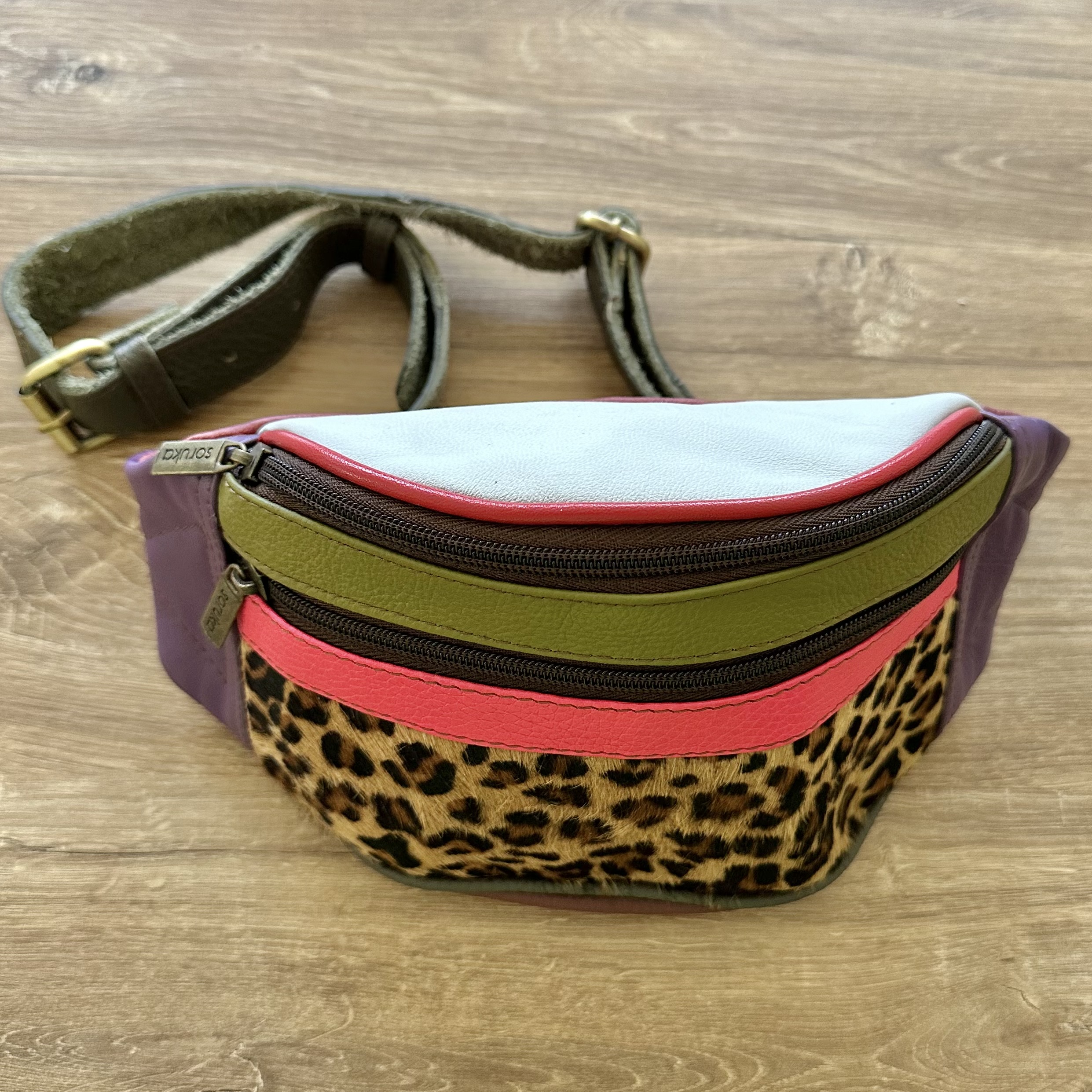 Da die Bauchtaschen aus Lederresten hergestellt sind, können kleine Gebrauchsspuren vorkommen.
