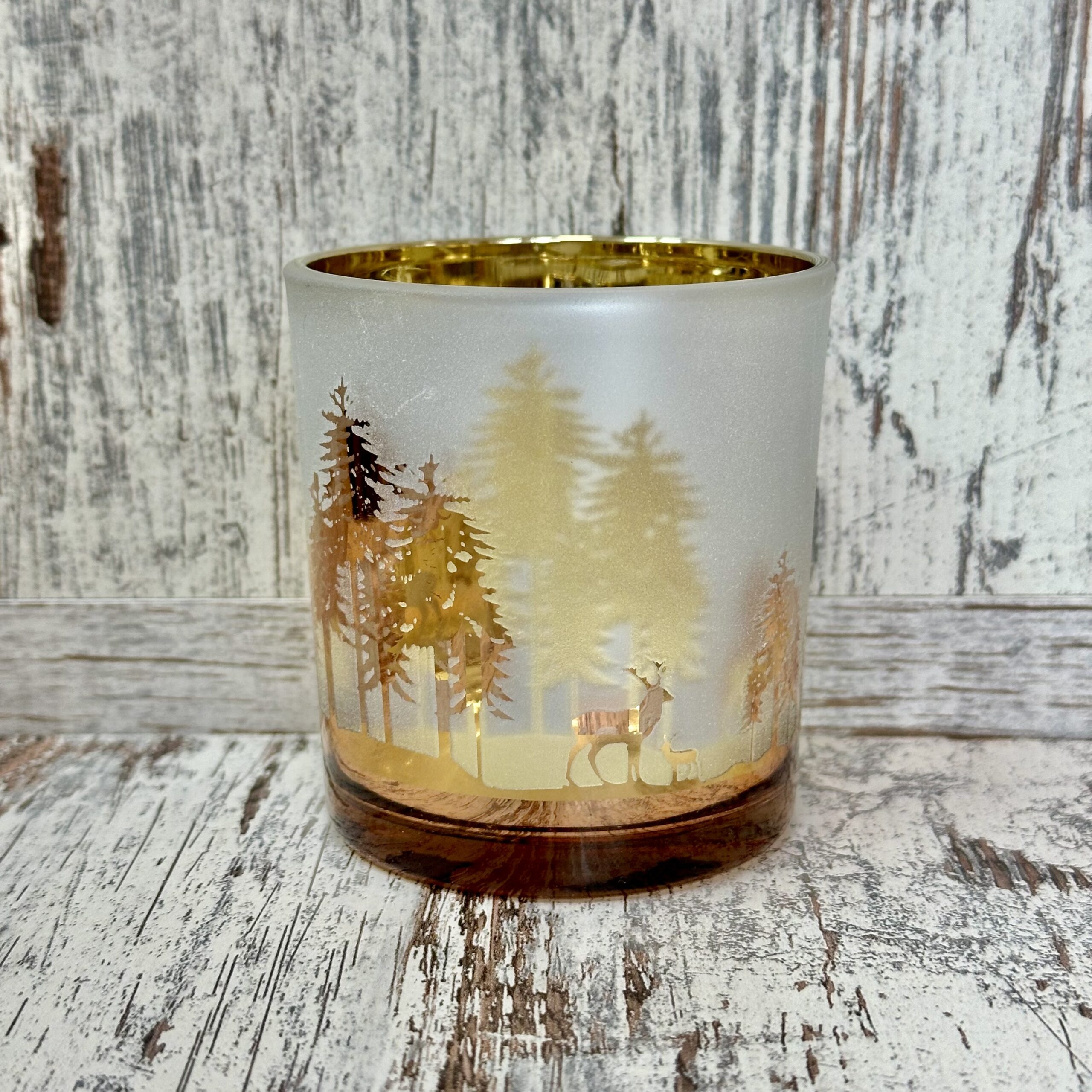 Windlicht «Hirsche im Wald», H8cm, D7cm